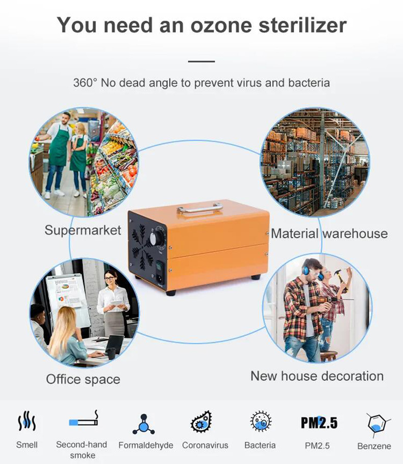The sterilization and deodorization air disinfection ozone machine can produce a highly oxidizing substance (ozone). Using its oxidative properties, it can destroy the biological structure of bacteria, viruses and other microorganisms in a relatively short period of time, making them unable to survive. There are many compounds that use their oxidizing properties to kill microorganisms for germicidal purposes, such as common chlorine, bleach, potassium permanganate, etc.