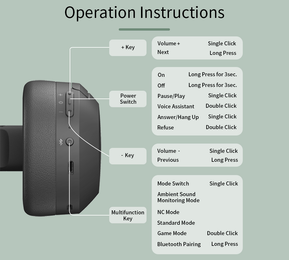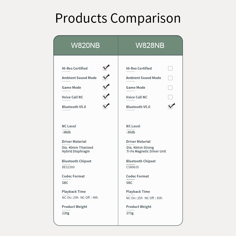 W820NB ANC Bluetooth Headphone Wireless Headsets