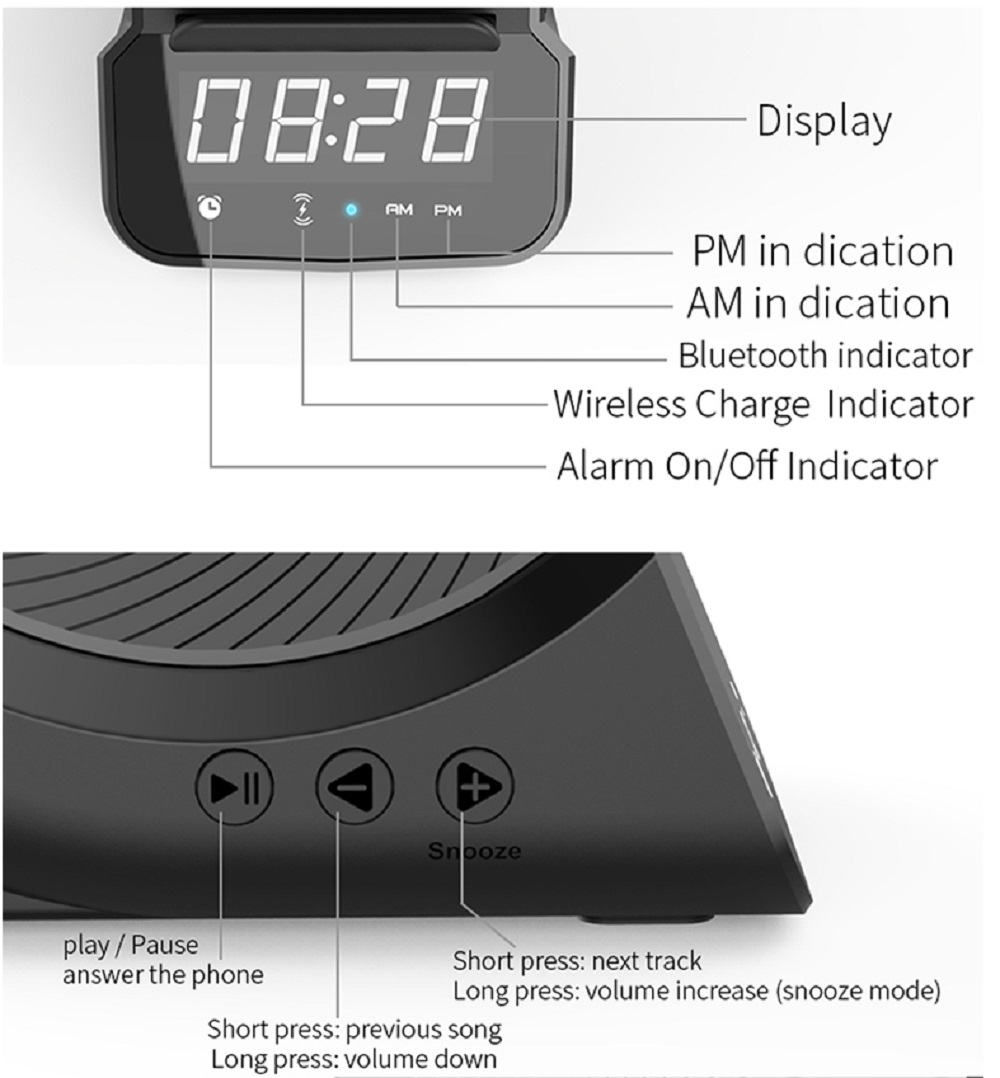4. Built-in FM radio, Ditigal clock & alarm.