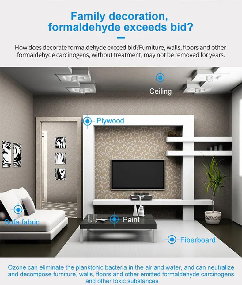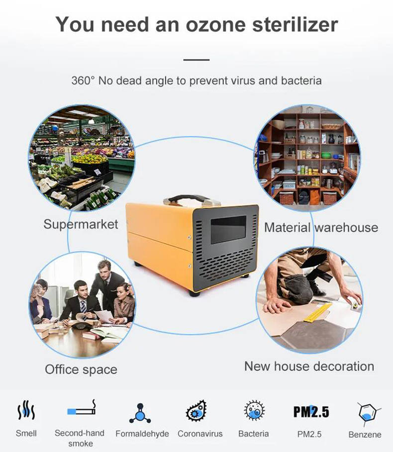 The sterilization and deodorization air disinfection ozone generator can produce a highly oxidizing substance (ozone). Using its oxidative properties, it can destroy the biological structure of bacteria, viruses and other microorganisms in a relatively short period of time, making them unable to survive. There are many compounds that use their oxidizing properties to kill microorganisms for germicidal purposes, such as common chlorine, bleach, potassium permanganate, etc.